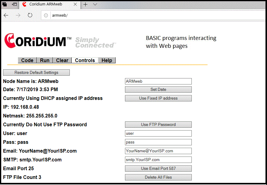 This page controls the ARMweb.