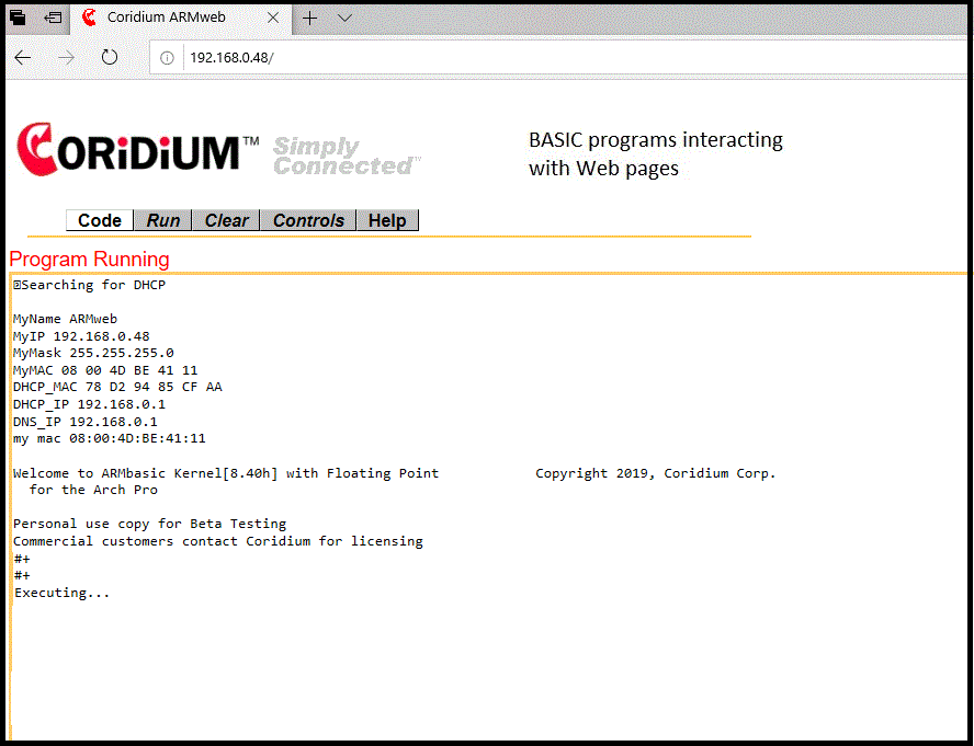 Some notes, currently errors in the BASIC embedded in HTML are not flagged, so be careful, but they will be visible to the console of BASICtools over the USB connection.