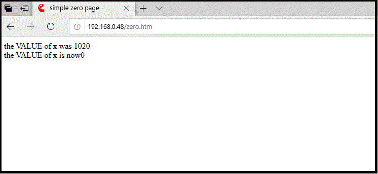 print "the VALUE of x is ";x ?> <br> <br> <a href="zero.htm">Zero X</a> </body> </html>