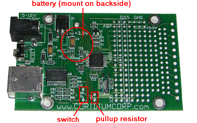 (connected to IO(2)). The optional battery for the real time clock (Panasonic
