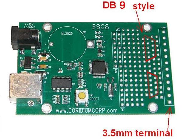 row on the right side is designed for 3.5mm terminal strips.