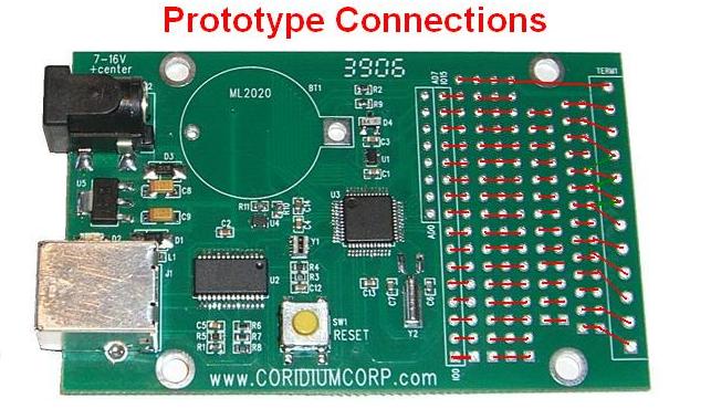 The spacing in the prototype area is 0.1" and the terminal strip