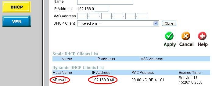 If there is no DHCP server found, the ARMweb can provide limited DHCP