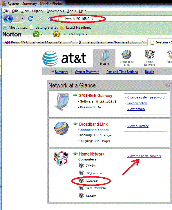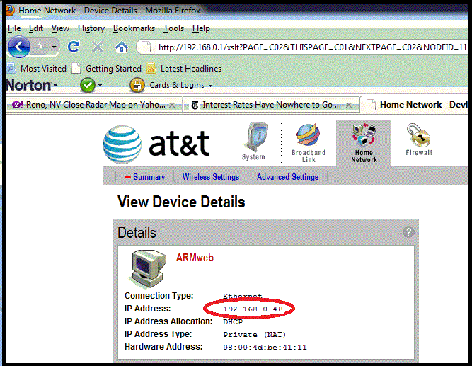But for this web interface navigate using a browser to http://w.x.y.z where w.x.y.z is the IP address of the ARMweb (192.168.0.48 in this example).
